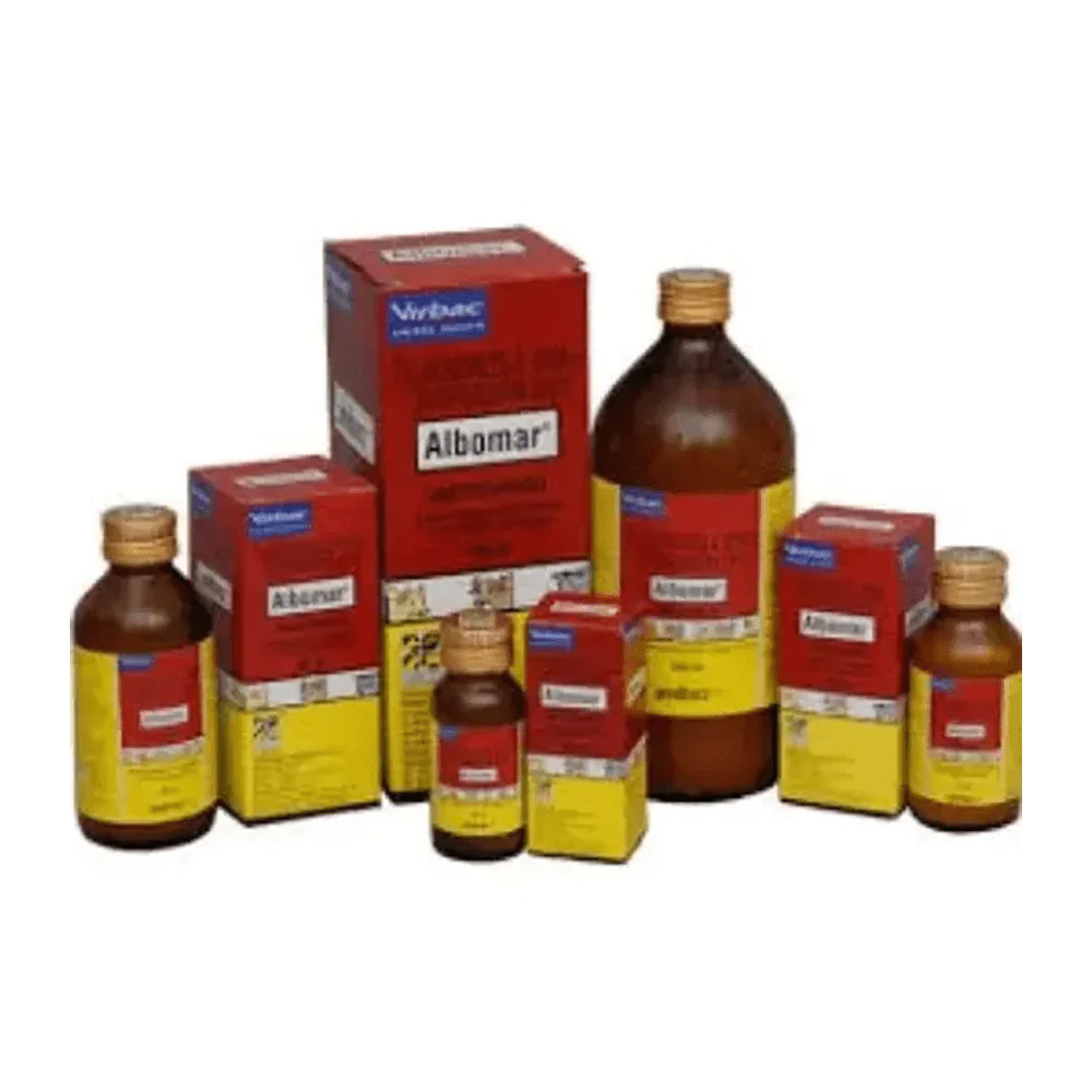 Albomar Albendazole Liquid for Animals is a highly effective broad-spectrum anthelmintic formulated to control and treat a wide range of internal parasites in livestock and farm animals. Powered by Albendazole, a trusted benzimidazole deworming agent, Albomar helps eliminate gastrointestinal worms, lungworms, tapeworms, and liver flukes, ensuring better health, improved productivity, and optimal weight gain in animals.