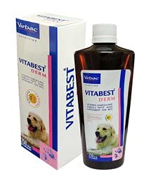 Virbac Vitabest Derm Omega 3 + 6 Syrup is a specially formulated dietary supplement designed to promote optimal skin and coat health in both?dogs and cats.?This high-quality syrup combines essential Omega-3 and Omega-6 fatty acids, vitamins, and other nutrients to support healthy skin, reduce inflammation, and enhance the overall appearance and texture of your pet’s coat. Ideal for pets with skin sensitivities, allergies, or dull coats, Vitabest Derm provides the necessary nutrients to keep your furry friends looking and feeling their best.